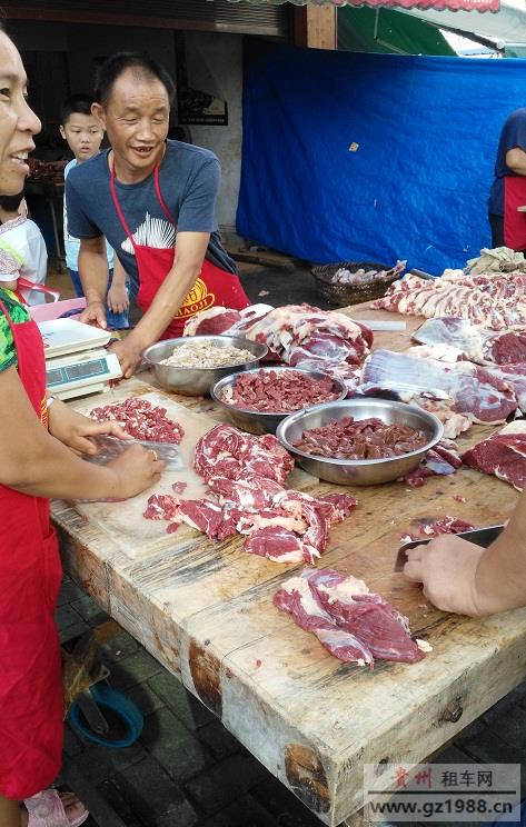 这里吃粉还是有步骤的:首先:要到他家旁边的牛肉摊上割牛肉,35元一斤,当天现杀的黄牛肉