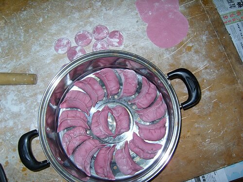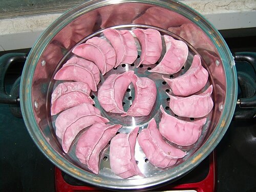 6.擀皮包成蒸饺,上蒸锅蒸熟即成。