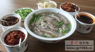 六盘水水城羊肉粉主料:米粉150克,带皮熟黑山羊肉50克