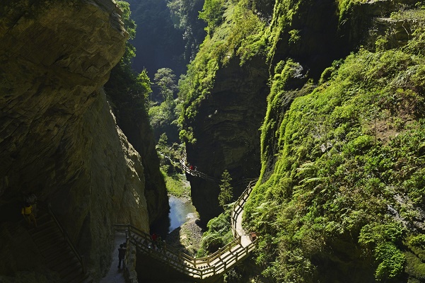 峡谷深200至500米不等,两边悬崖千仞、岩壁绝险。谷内原始森林茂密,飞瀑溪流不绝,、气势磅礴。