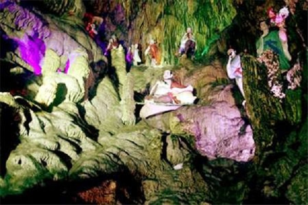 天星洞景区在天星桥景区中段。在五光十色、变幻无穷的奇峰异石之中,4根大石柱直抵洞顶,每根石柱都在20米高以上,柱上石花丛生,如雕龙刻凤,色泽艳丽。