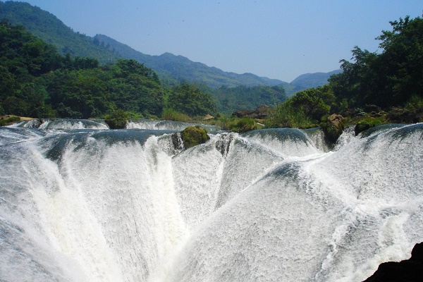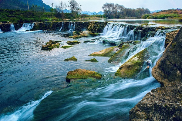 【天星桥景区】天星桥景区位于黄果树大瀑布下游7公里处。这里主要观赏石、树、水的美妙结合,是水上石林变化而成的天然盆景区。如果说黄果树大瀑布的特点是气势磅礴,天星桥区则是玲珑秀美。天星桥景区分为天星盆景区、天星洞和水上石林三大区。
