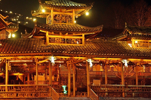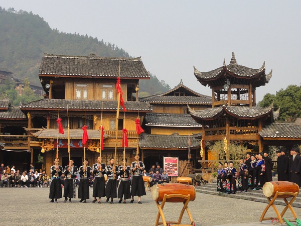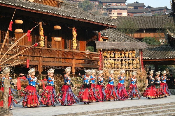 步行街区域的表演场有看苗族歌舞表演,时长约30分钟。你也可以参观西江苗族博物馆、鼓藏头(苗王的屋子,屋内供着圣物铜鼓)。或者沿着白水河走走,看看河上有屋檐遮风挡雨的风雨桥,矮矮窄窄用木头平铺的栈桥。