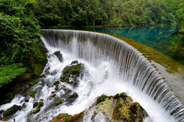 【荔波小七孔景区鸳鸯湖】荔波小七孔鸳鸯湖景区为世界同一纬度地区绝无仅有的岩溶地貌水上森林区,由两个大湖、四个小湖串联成一个奇妙水网。