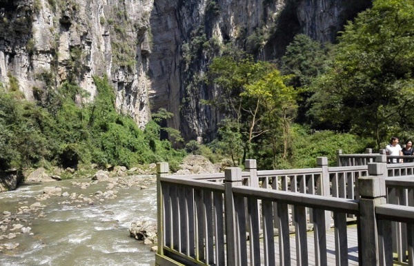 两岸岩壁陡峭,群峰耸峙,雄奇峻秀,与峡谷相伴发育的峰丛、天坑、天生桥等其它喀斯特景观,共同构成系统、完整的喀斯特多层发育系统,它们各自之间既有很好的空间分布规律,又有时间上先后生成、发展的序列可追寻,是地球上一处极好、罕见的喀斯特峡谷天然博物馆。
