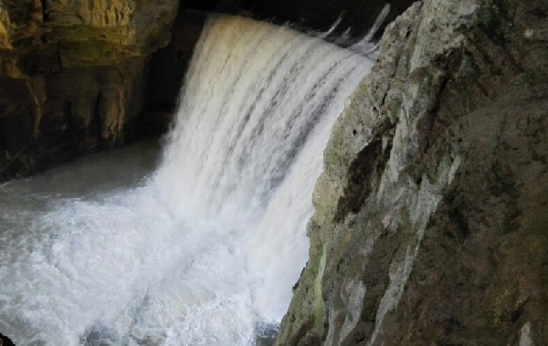 峡谷河流绮结河发源于织金县城西南县的凤凰山,全长30km,峡谷长约8 km。绮结河下游深切河谷,由西南方向流入,沿北东方向弯延流动,时而为明流,时而潜入地下,交替穿越于谷底,最后于大槽口潜入地下形成伏流,向北东约以2km 后,流出汇入六冲河。