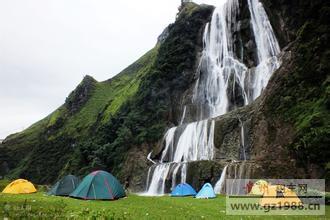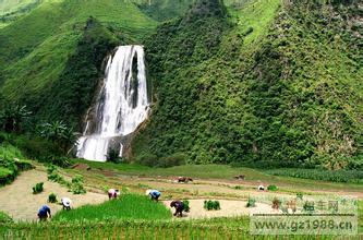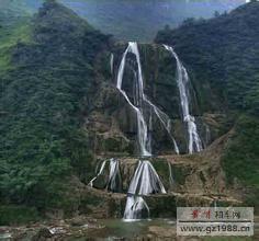 滴水滩瀑布在黄果树瀑布以西六公里,这里有二条对峙的险峻山岭―关索岭和大坡顶,是一个深达七百 余米的峡谷 滴水滩瀑布由三个瀑布组成,最上面叫连天瀑布,中间为冲坑瀑布,下面为高潭瀑布,它是集高、大、美、秀著称的瀑布群。