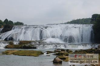 陡坡塘瀑布位于黄果树瀑布上游1公里处,瀑顶宽105米,高21米,是黄果树瀑布群中瀑顶最宽的瀑布。陡坡塘瀑布顶上是一个面积达1.5万平方的巨大溶潭,瀑布则是形成在逶迤100多米长的钙化滩坝上。陡坡塘瀑布还有一个特殊的现象:每当洪水到来之前,瀑布都要发出“轰隆.轰隆”的吼声,因此又叫“吼瀑”。