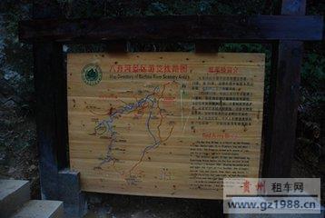 风景区由喀斯特地貌景观、亚热带喀斯特森林景观、河、溪、库水域景观、丘陵草场景观以及村寨田园风光组成。以八舟河为纽带,巧妙地将“平湖飞瀑”、“草坪春色”、仙人岩、少寨溶洞群、桂花台、鸬鹚架、江心岛等景点联串起来,犹如一串翡翠珍珠。两岸长廊画卷倒映在八舟河中,岸连翠竹葱郁,水车悠悠,林内鸟啼蝉鸣,乘一叶小舟漂流,让人流连忘返。其中,西园山庄是新开发的一处集食宿、度假休闲于一体的景点,位于八舟河上游,距县城有4公里,开设项目有:水上漂流、划船、坝中游泳、野炊露营、垂钓、自助烧烤,领略侗、苗歌舞、品尝民族风味食物。园内小巧别致的民族建筑,依山傍水,给本来已经优美的景色增添了无限光彩。 同济大学丁文魁教授感叹:"从未见到过如此美丽的山水田园风光"。