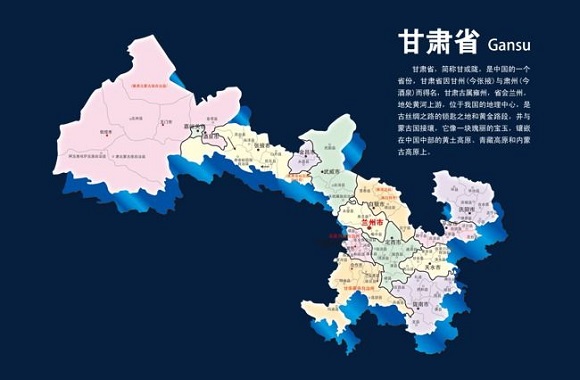 甘肃,简称“甘”或“陇”,中华人民共和国省级行政区,省会兰州,省名取甘州(今张掖)与肃州(今酒泉)二地的首字而成。由于西夏曾置甘肃军司,元代设甘肃省,简称甘;又因省境大部分在陇山(六盘山)以西,而唐代曾在此设置过陇右道,故又简称为陇。