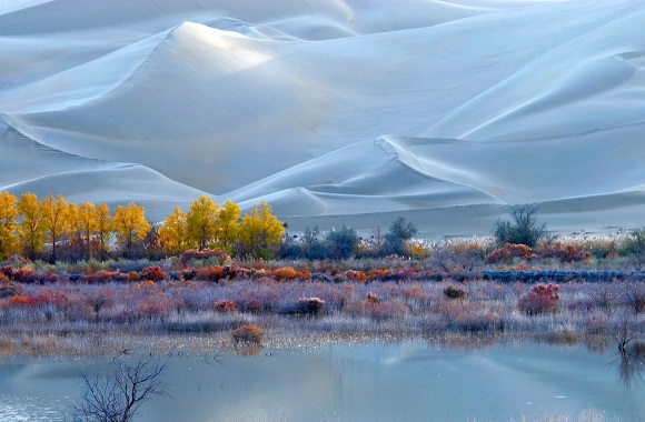 位于博斯腾湖南岸,距库尔勒市60公里,和库高速公路塔什店出口,转塔扬公路可达,面积30平方公里。因白鹭长年栖息而得名,是新疆著名的自然风景旅游区。