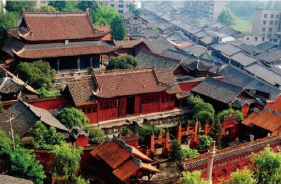 资中武庙: 武庙,又称关帝庙,是古代供祀三国时关羽的庙宇,位于风景秀丽的省级风景名胜区重龙山脚下,与资中文庙相距100余米。