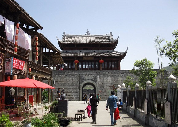 国家AAAA级旅游景区。罗城古镇位于犍为县东北部,距乐山市60千米。古镇主街凉厅街俗称“船形街”,始建于明代崇祯元年(1628年)。罗城古镇是四川省省级历史文化名镇。其中船型街是四川省首批“历史文化名街”,省级重点文物单位。除船型街外,镇上还有以五宫四庙为代表的各类文物古迹10多处。这座船形古镇全长2000多米,宽约650米。主街道为南北走向,两端较窄,中间宽敞。街面是船底,两边的房